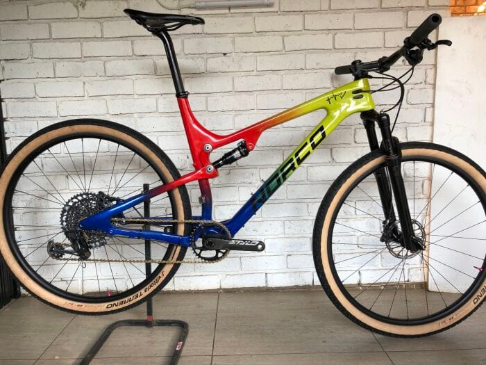Wheels: Carbon hoops with Stans neo hubs (there are a few marks and knocks on the hoops and it’s been used as is perfectly)